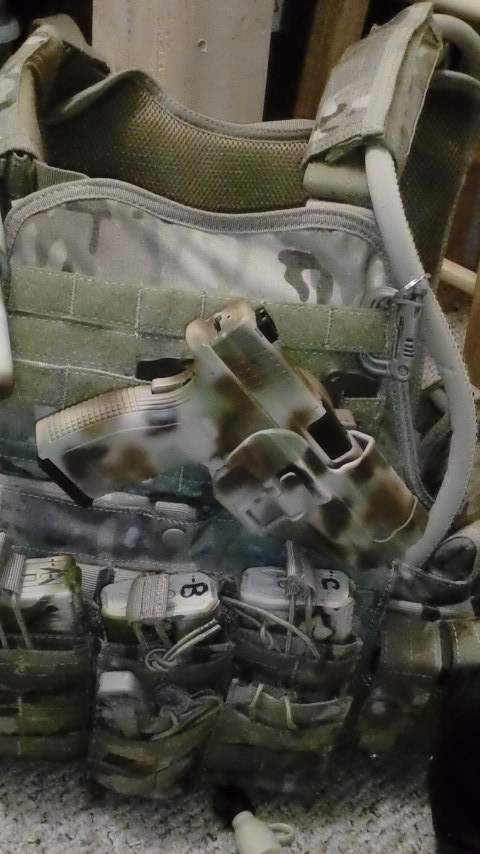 Multicam MOPC with full setup, Springfield XD9 (Duracoat multicam) on a serpa quick detach.