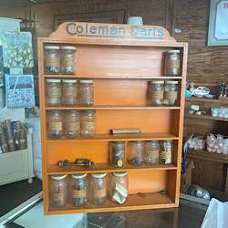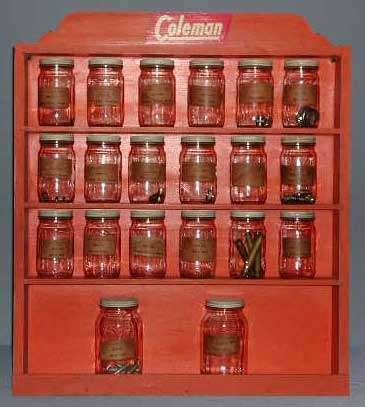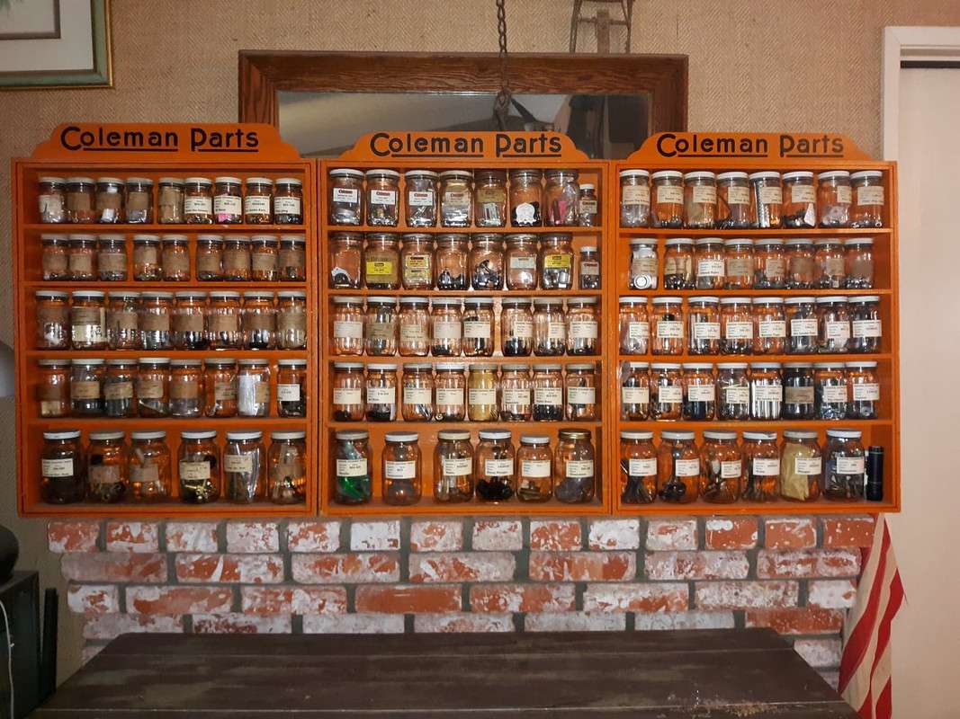 Coleman parts cabinets and parts jars