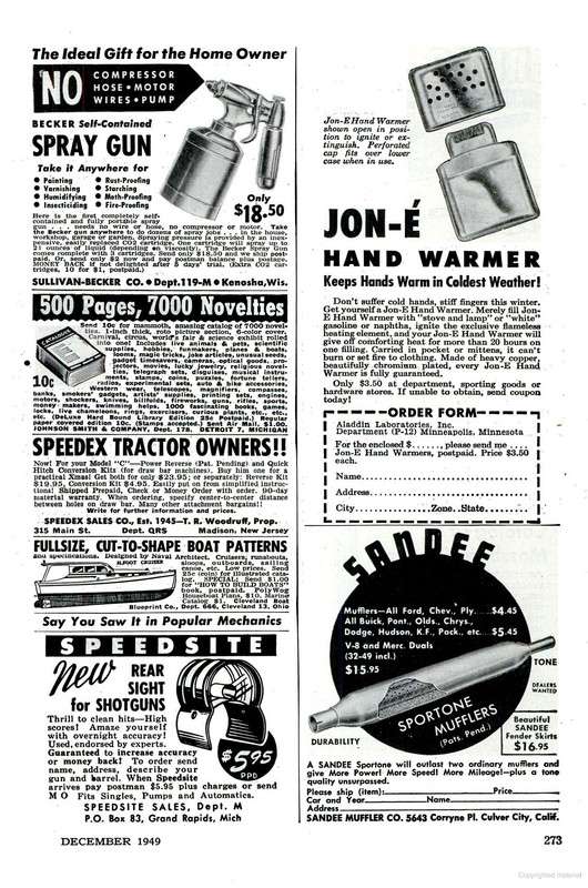 Jon-e' Ad. Popular Mechanics - Dec 1949 - Page 273.