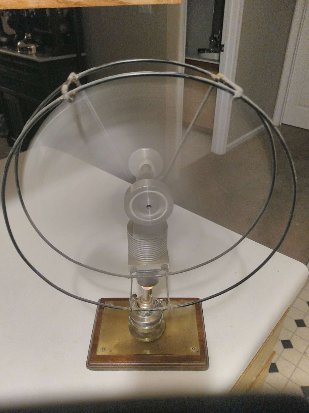 Alcohol fired. This is a super low speed fan that Dad made to sit on his desk at the museum.