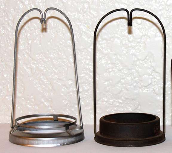 Left: Mantle holder for 1940 - early 1942 B&H manufactured Wards incandescent mantle lamp Right: mantle holder for 1935 - 1939 E&G manufactured burner for Wards mantle lamp The unmounted mantles are interchangeable but one mantle frame will not seat properly on the other lamp.