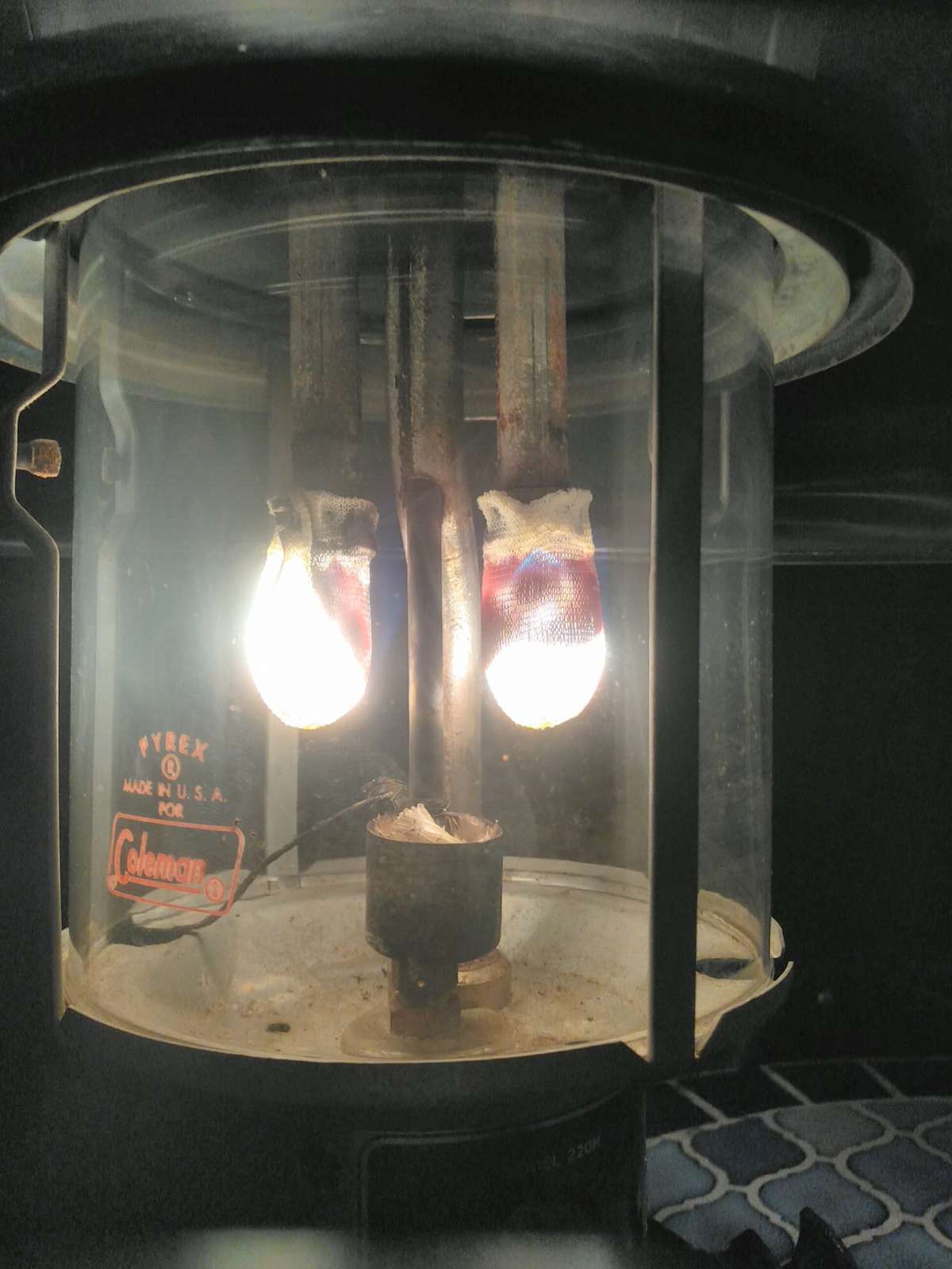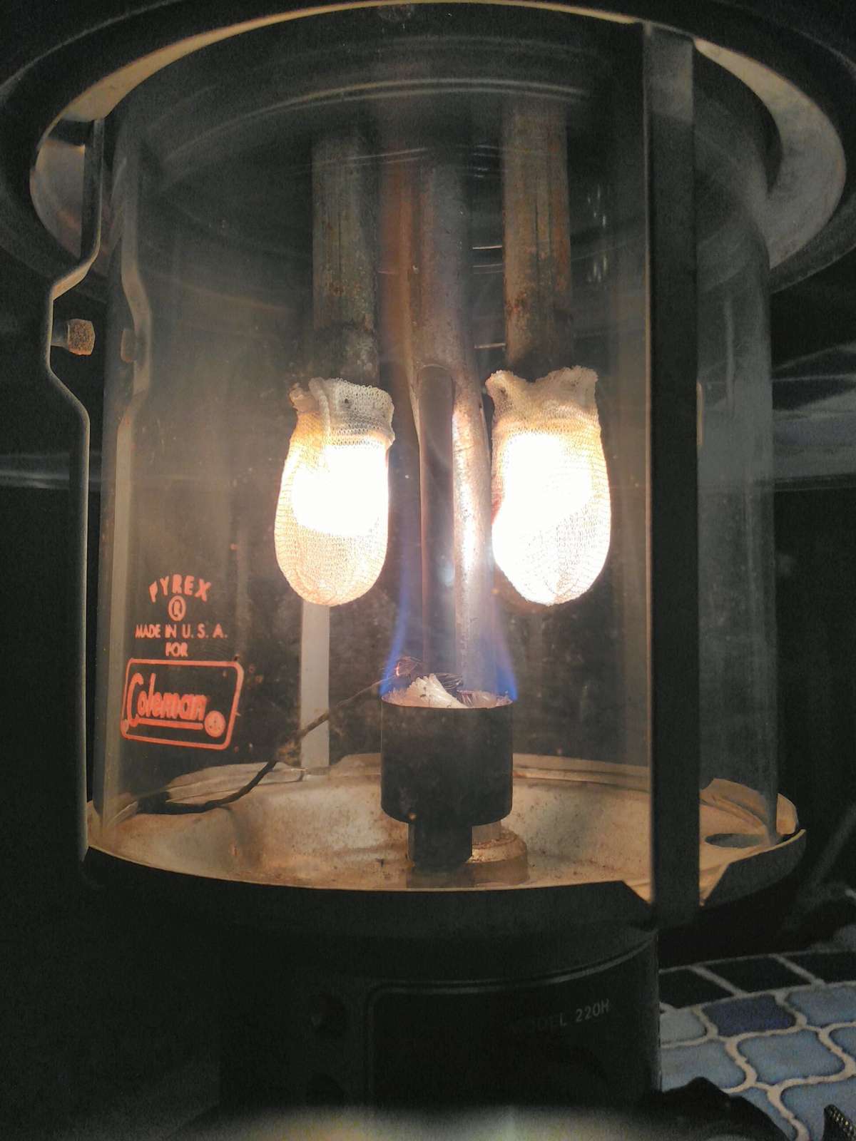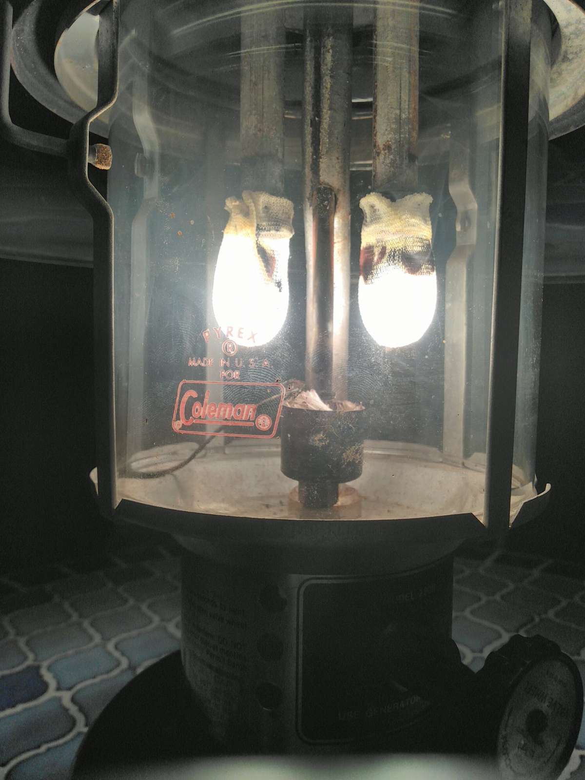 Six hours on 12.5 ounces. Pressure was low. Tip cleaner had no effect. Pumping and the shaking associated with it brought mantles back to life and they showed a decrease in the size of their black spots.
