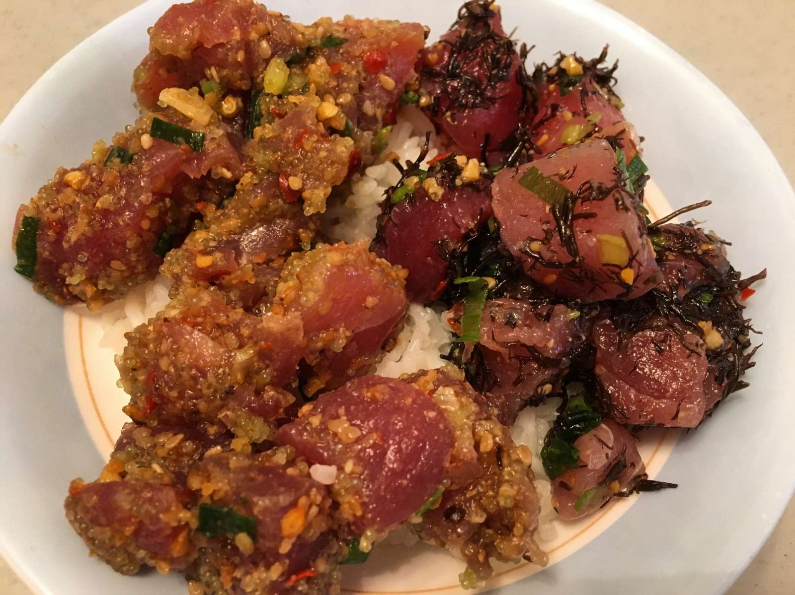 Poke on sushi rice
