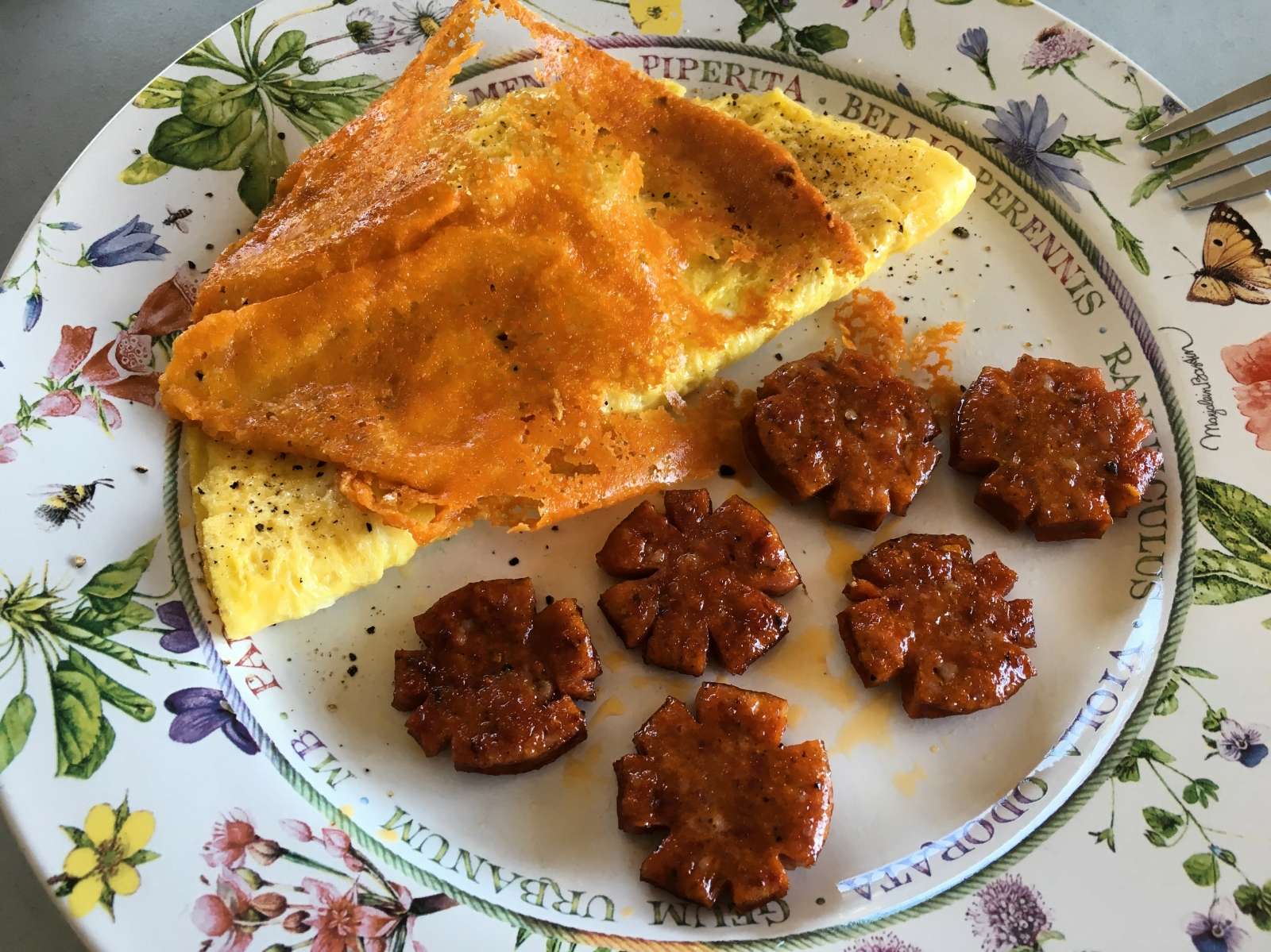 Cheese & garlic omelette, fried cheese and Portuguese sausage