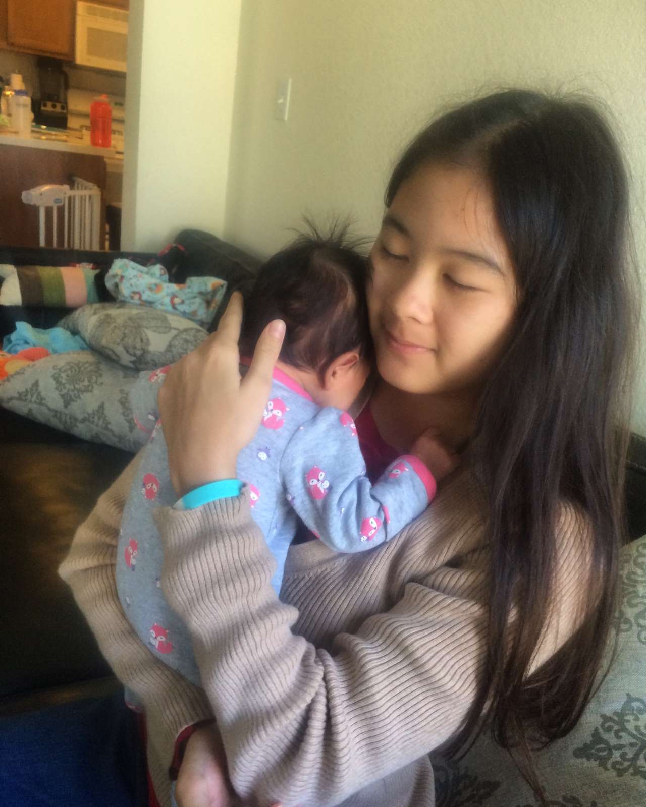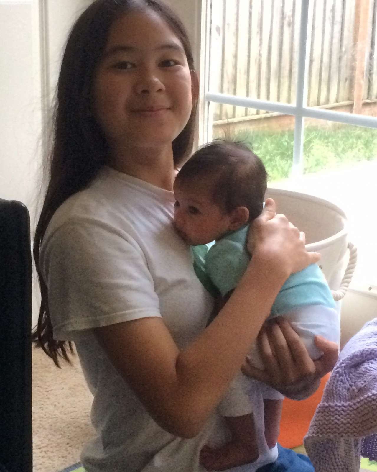 What up, cuz? Little monkey visiting cousins. She's a good sitter.