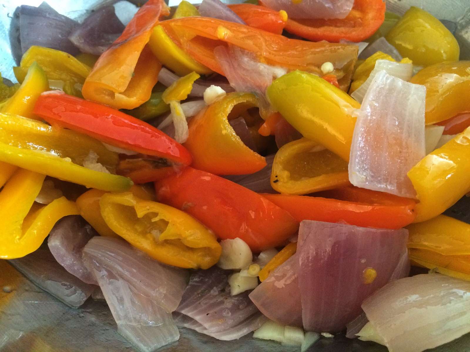 Peppers, onions and garlic