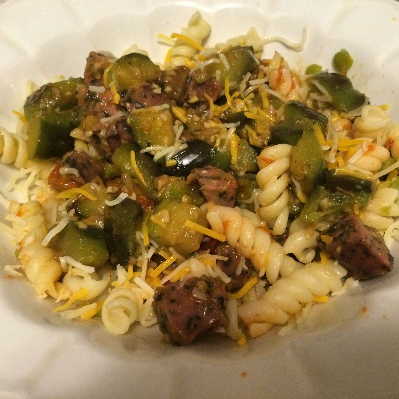 One of my tai chi students gave me some eggplant. So tonight, eggplant and sausage on pasta and lentils
