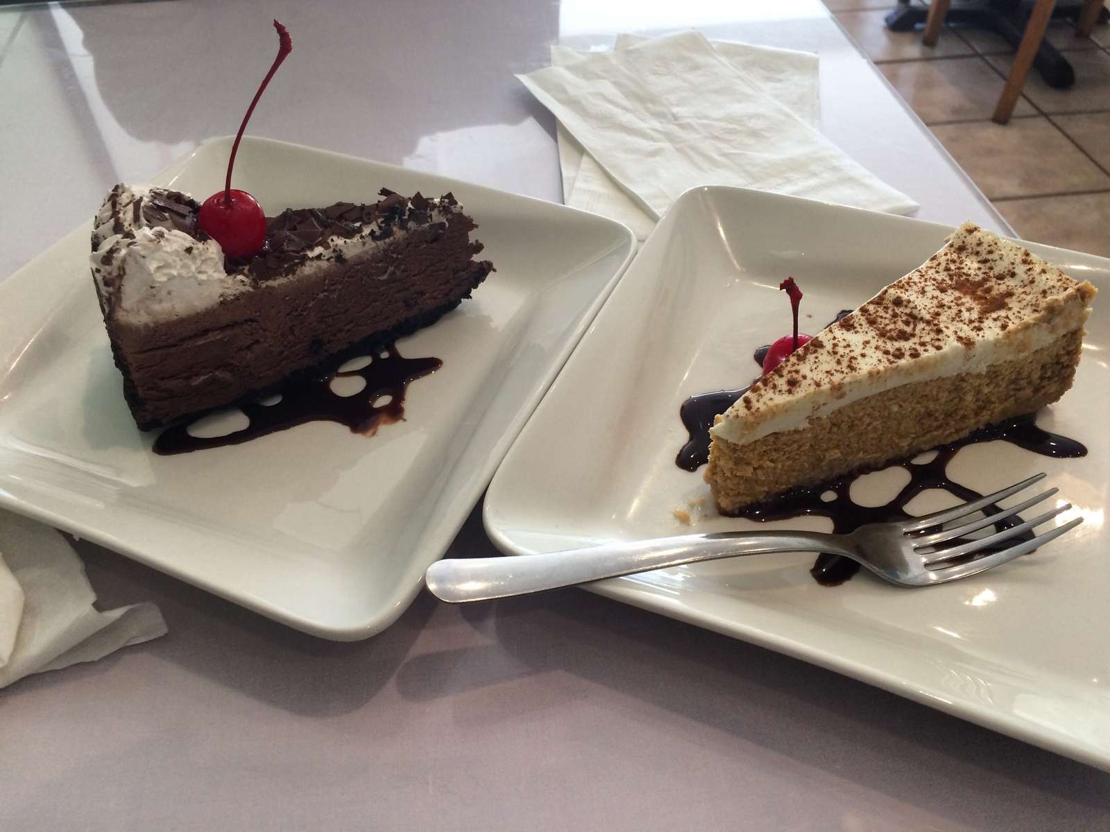 Chocolate mousse cake and pumpkin cheesecake