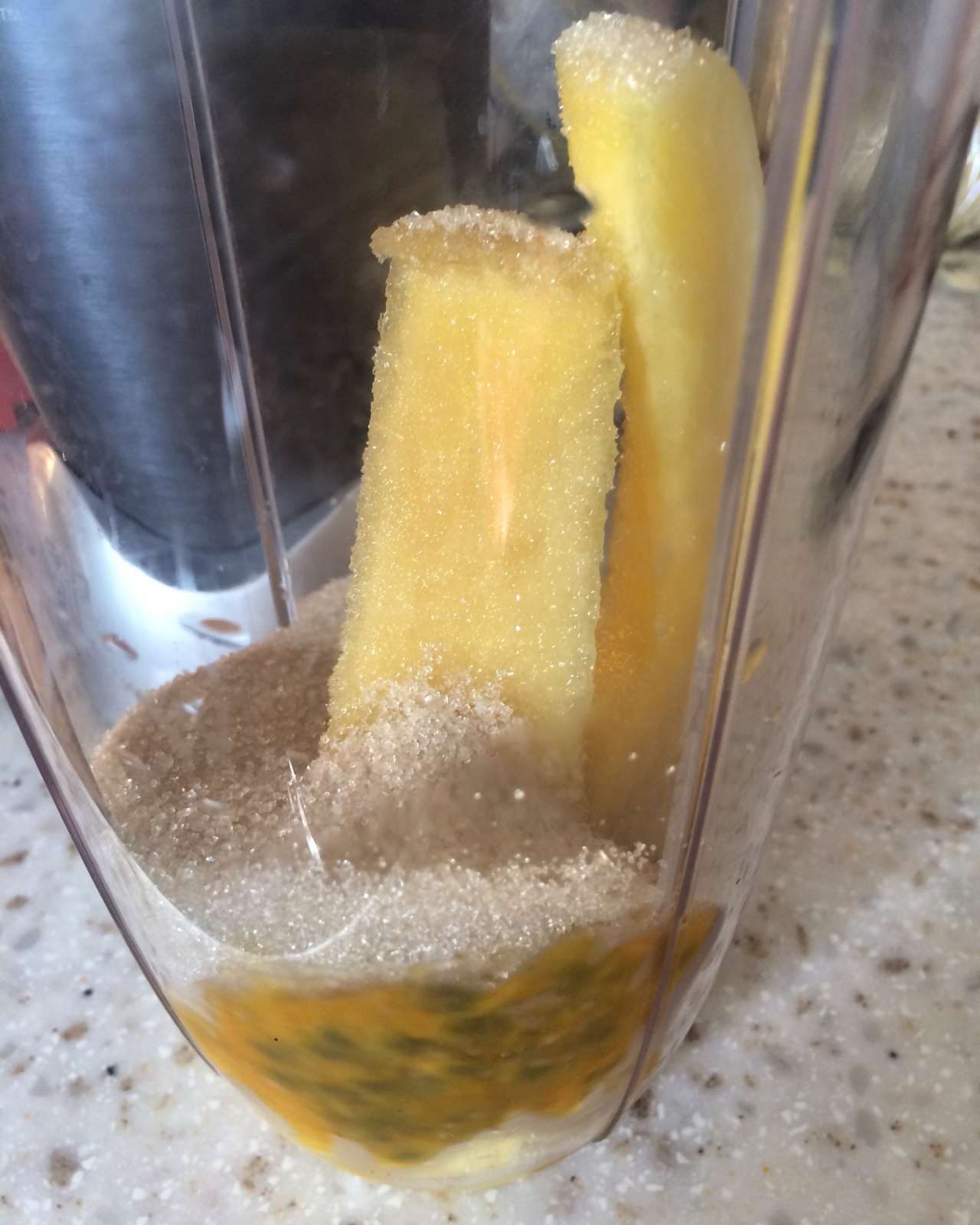 Getting ready to blend pineapple, lilikoi and sugar in the nutribullet to make ice cream.