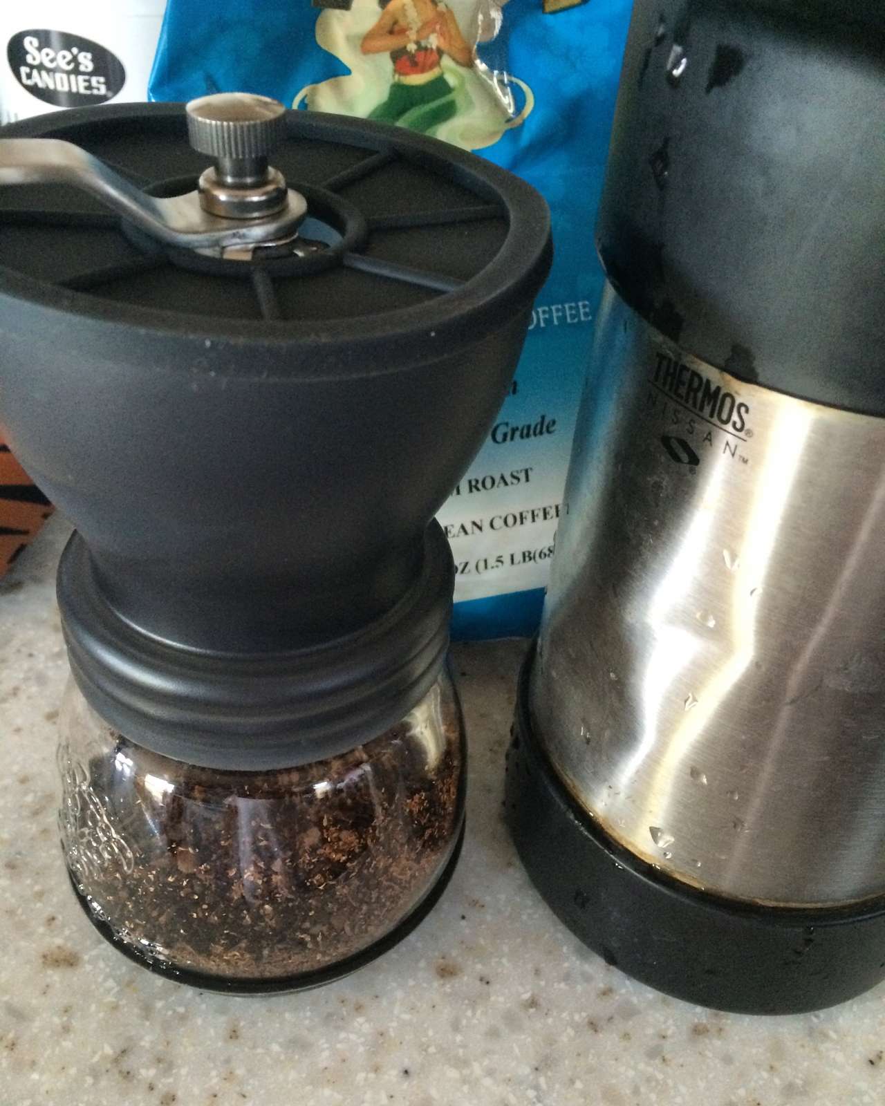 Camp coffee... Hand grinder and French press