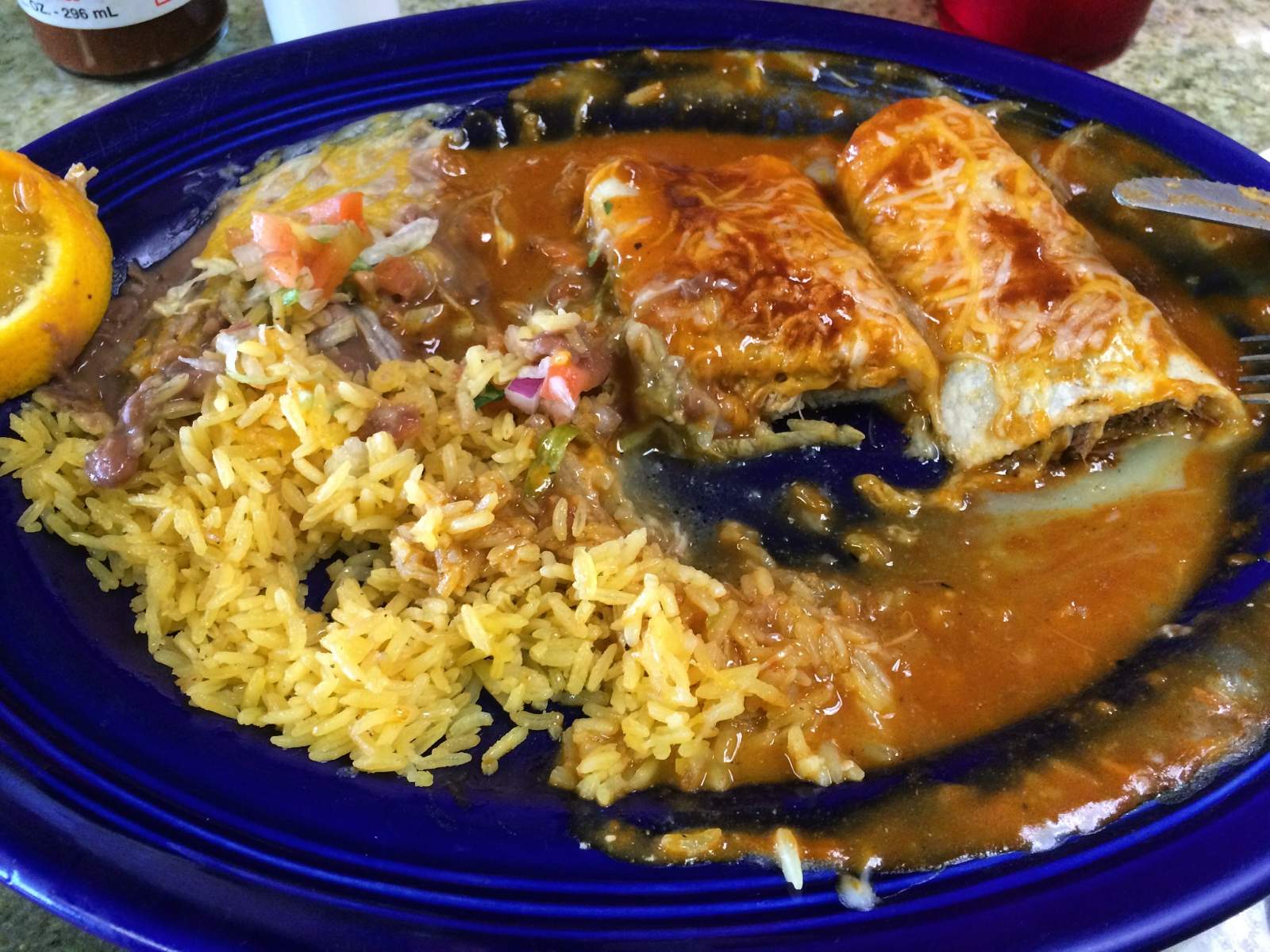 Half eaten enchiladas