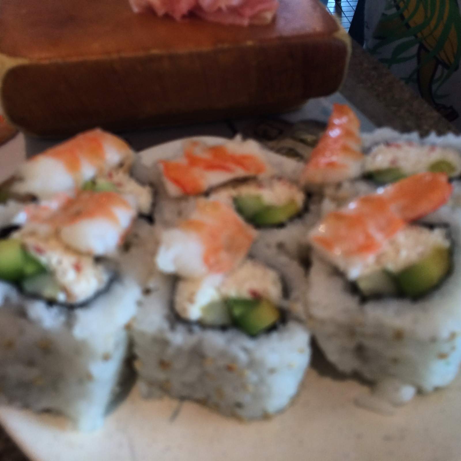 California roll topped with shrimp