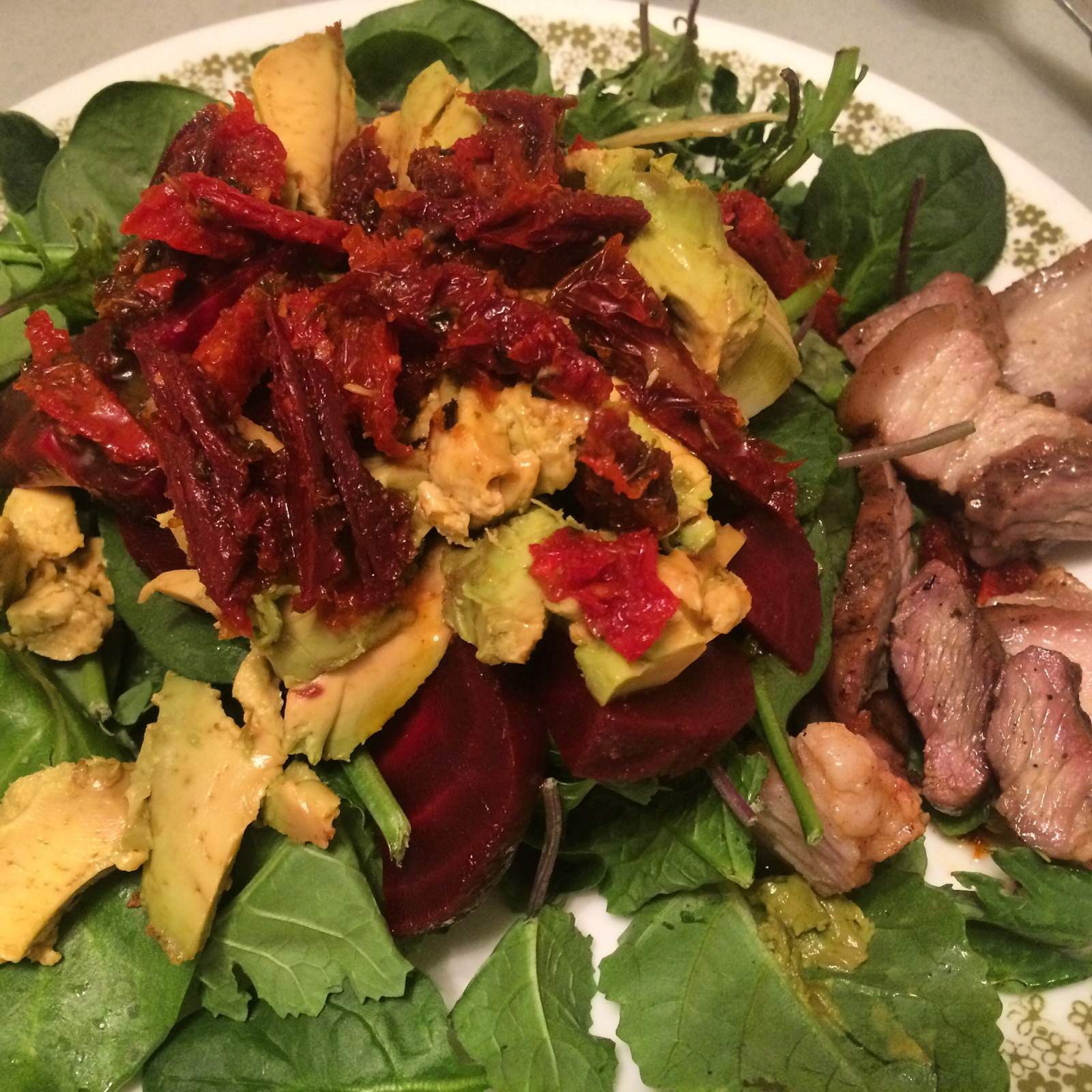 Salad and smoked pork belly