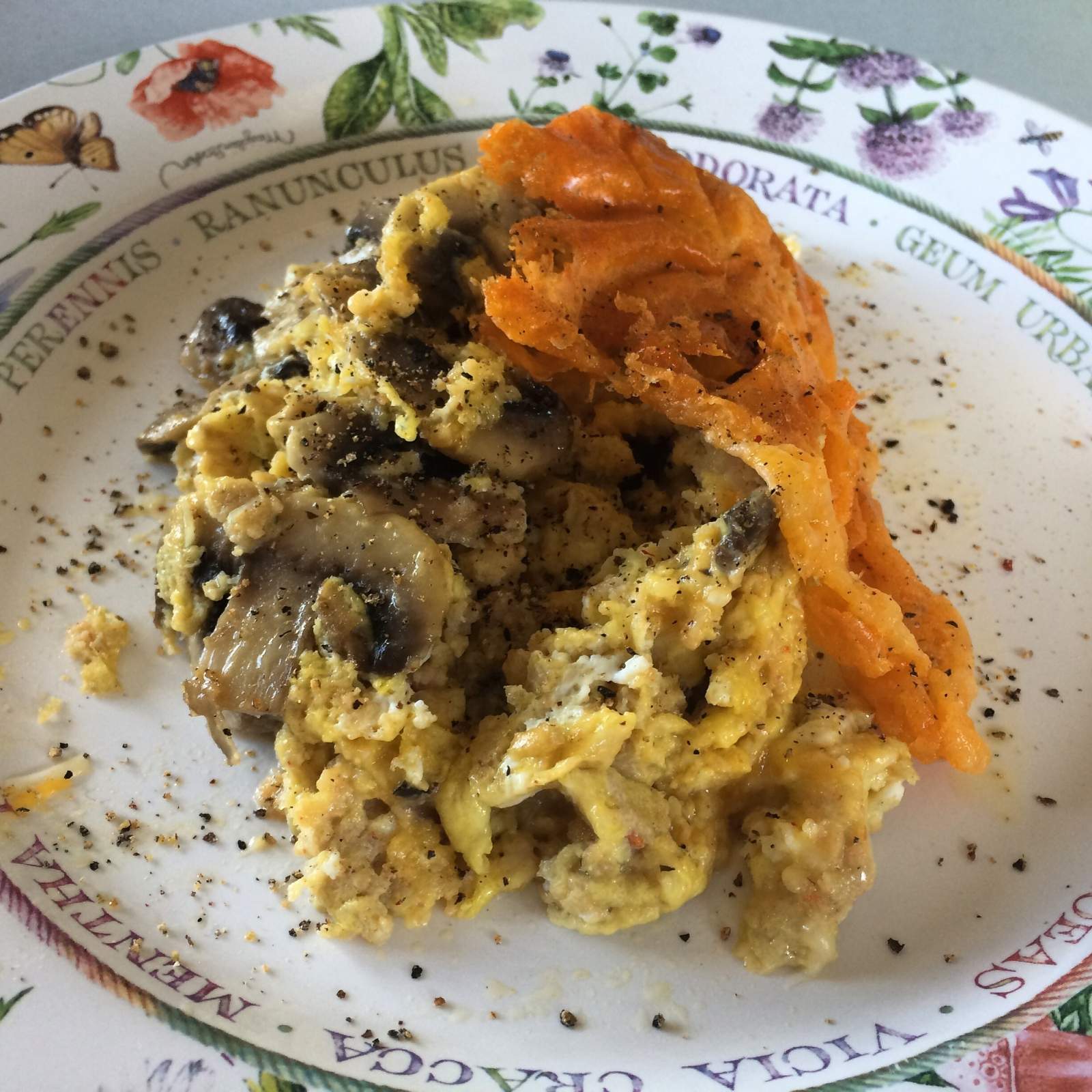 Crab & mushroom scrambled with fried cheese