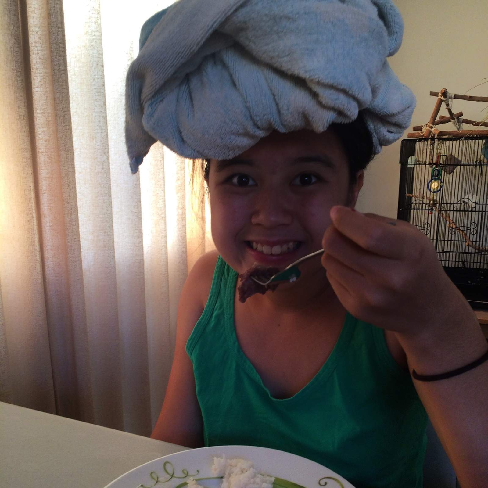 Monkeys ❤️ kalbi. Silly towel hat.