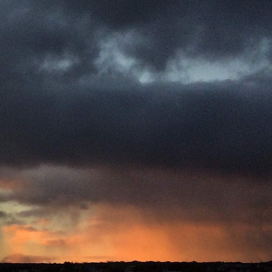 Red rain during sunset