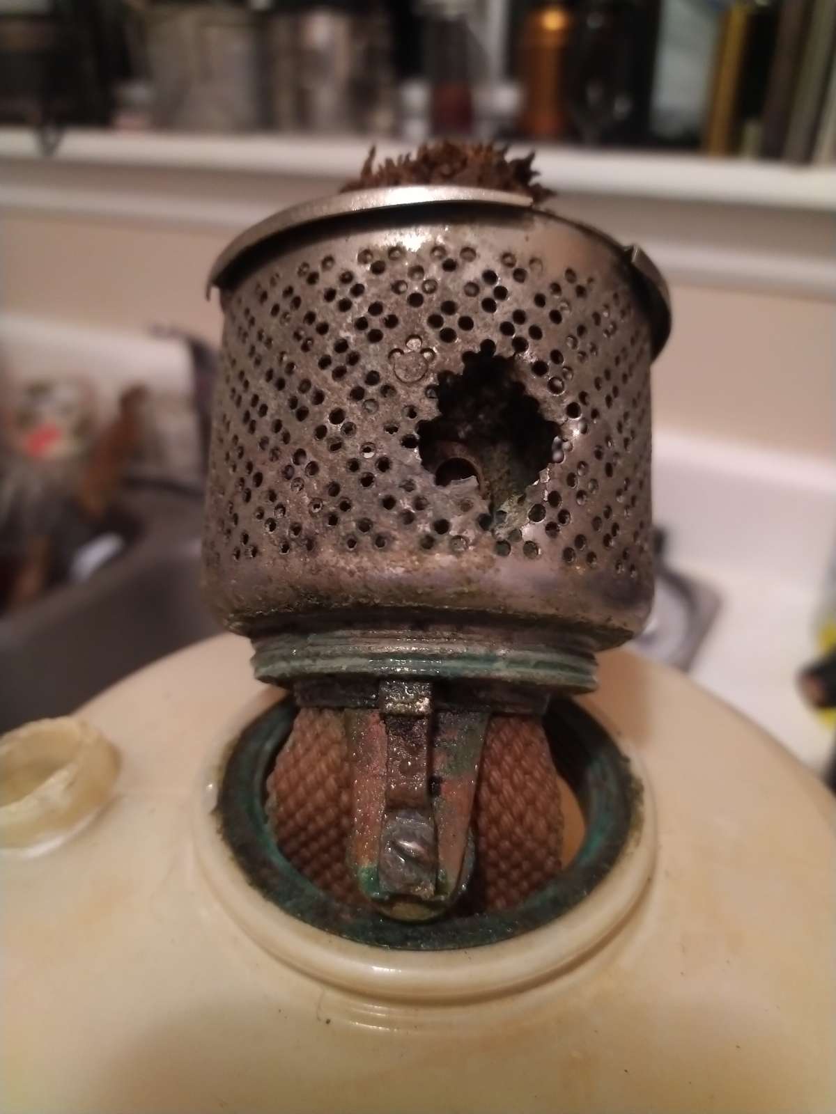160 outer wick tube dent from hit on wick riser shaft