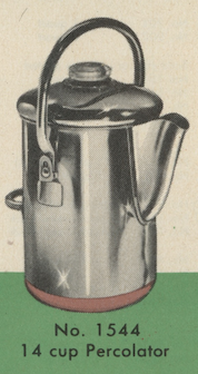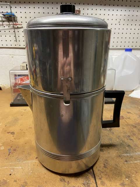 test 5/30/24 six coffee cups of water three scoops grounds. 12 min to perk. 15 minutes heat off. smells good, looks dark, tastes weak.