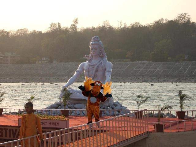 Really wanted to go the the Taj Mahal, the palace of love but I was getting nauseous in the back of that cab with the towel head driver playing chicken with everyone else on the road, the 200 degree heat, this fur coat, the smells (ugh) Maybe that's what gamey smells like. Good golly, I hope not. Anyway, when the driver slowed enough to take the corner on two wheels, I threw open the door and made a dive for the ground. Escape was my only option. but that little brown man blew a "U"ey and tried to run me down, screaming something unintelligible about rupees - illiterate little gnome doesn't even know it's pronounced "rufies" and anyway, I have no rufies. I ran as fast as I could toward the river where I planned to swim to safety but seeing the odd brown floaters in the water, I decided to just make a run for it. The closest place he couldn't get to with his little cab was at this Shiva Statue so that is where I found a safe haven from the mad cabbie