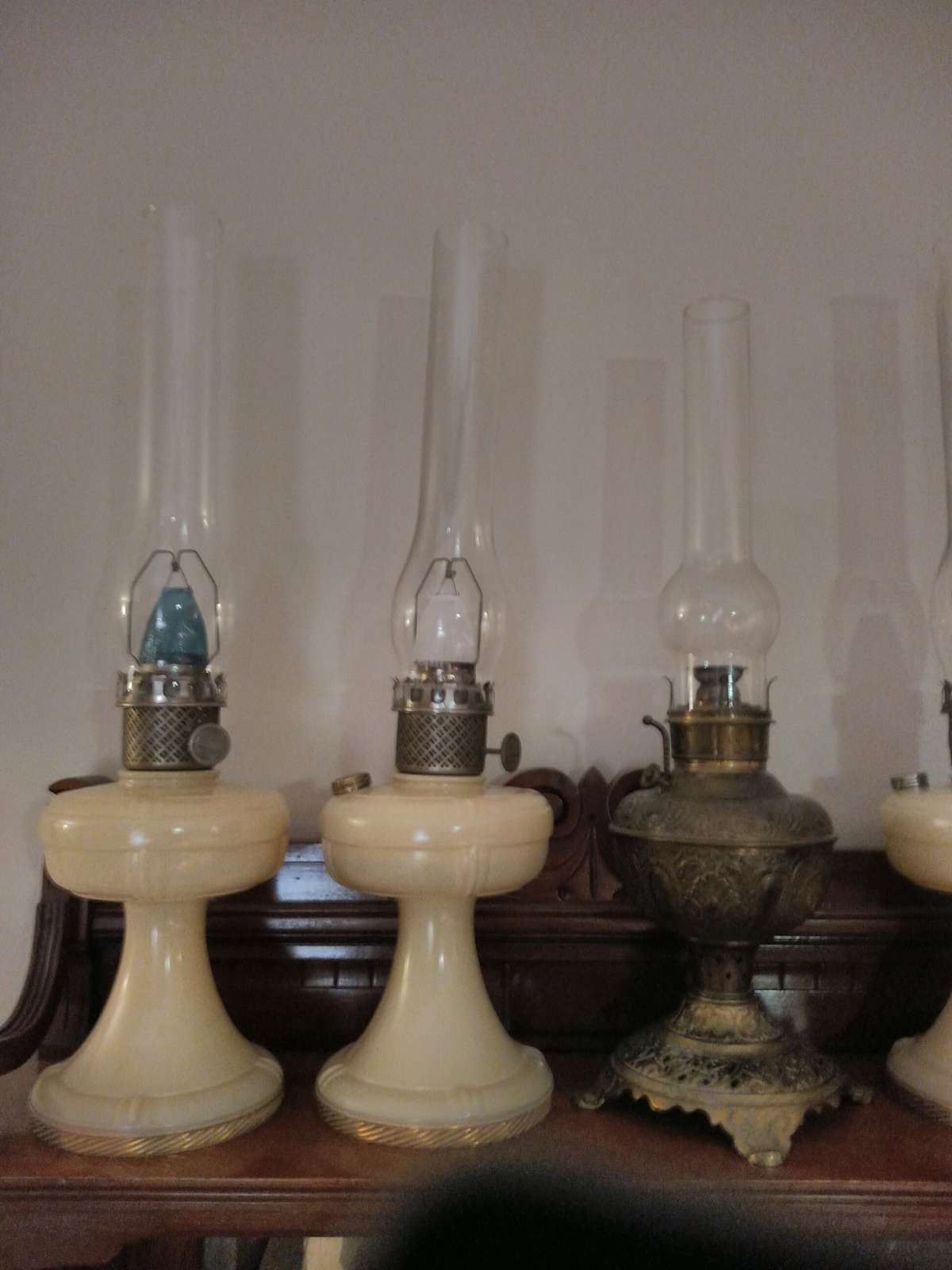 I'm thinking that I-Lean might be more appropriate. The tilt is clearly in the glass fount. I may swap this fount onto the electrified lamp just to avoid overheating one side off the chimney.