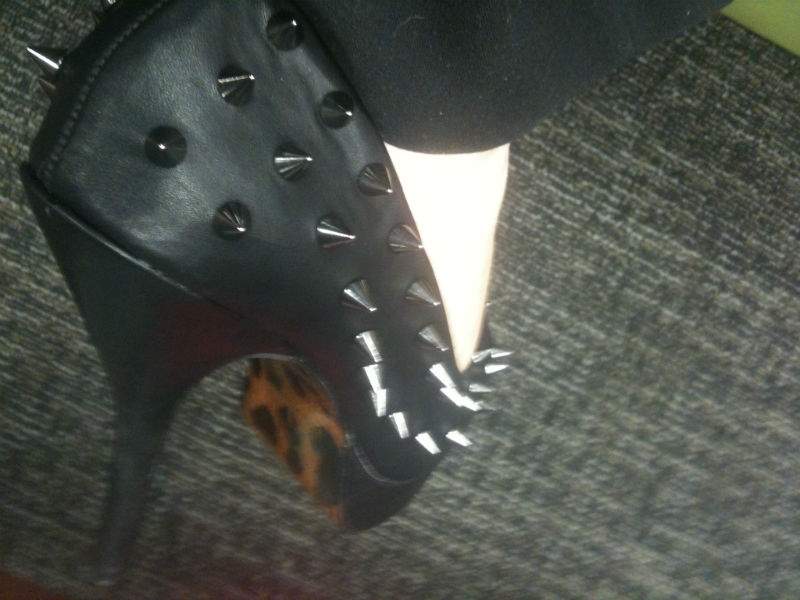 Some of my heels double as weaponry, like these Betty Paige platform spiked stillettos I just got. [OO]